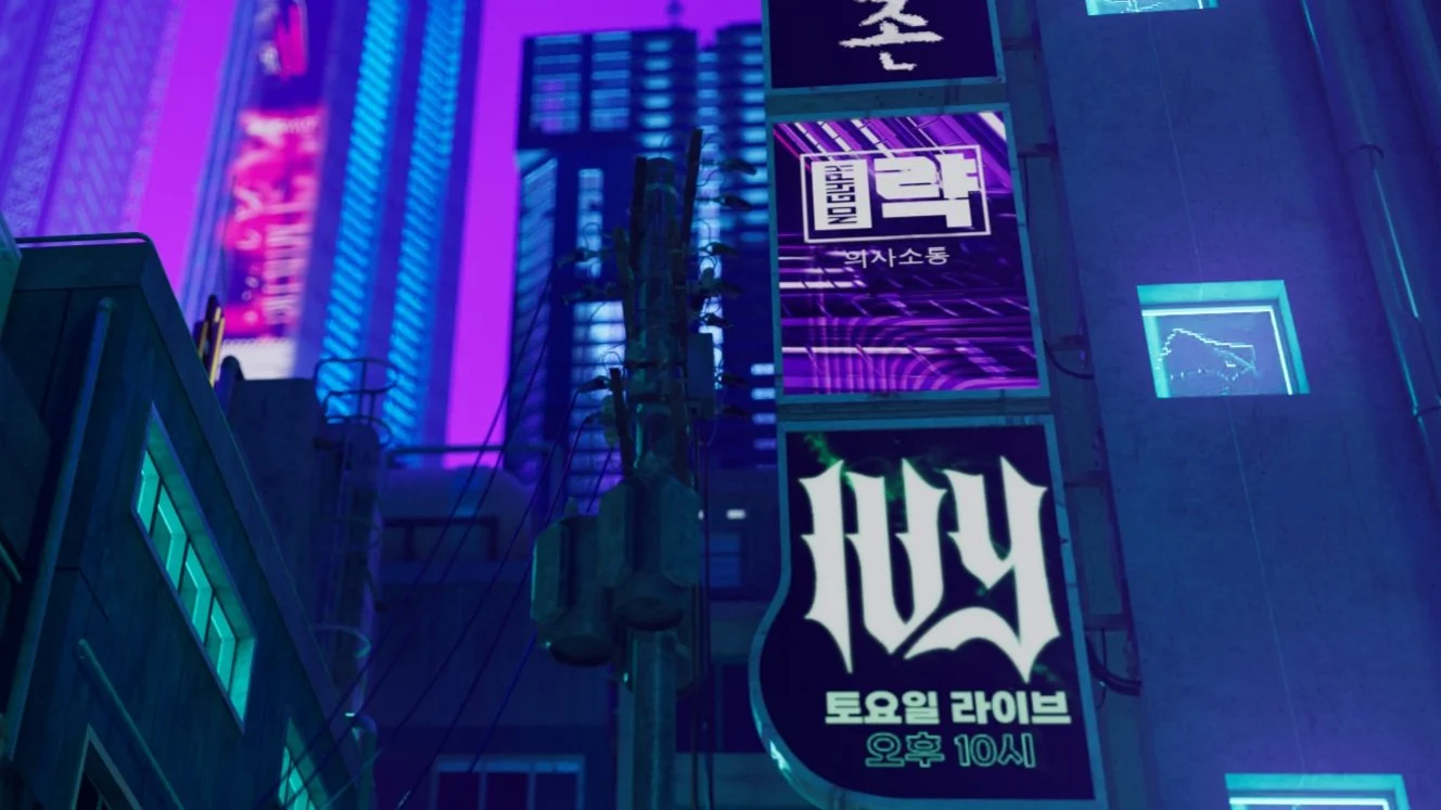 All scenes use various KitBash3D Models. The signage for these assets had English and Japanese characters. To further immerse this scene in the Korean setting, the assets were changed to the respective language. I also had to add Korean as a language keyboard extension on my machine to be able to use different fonts for Korean text.